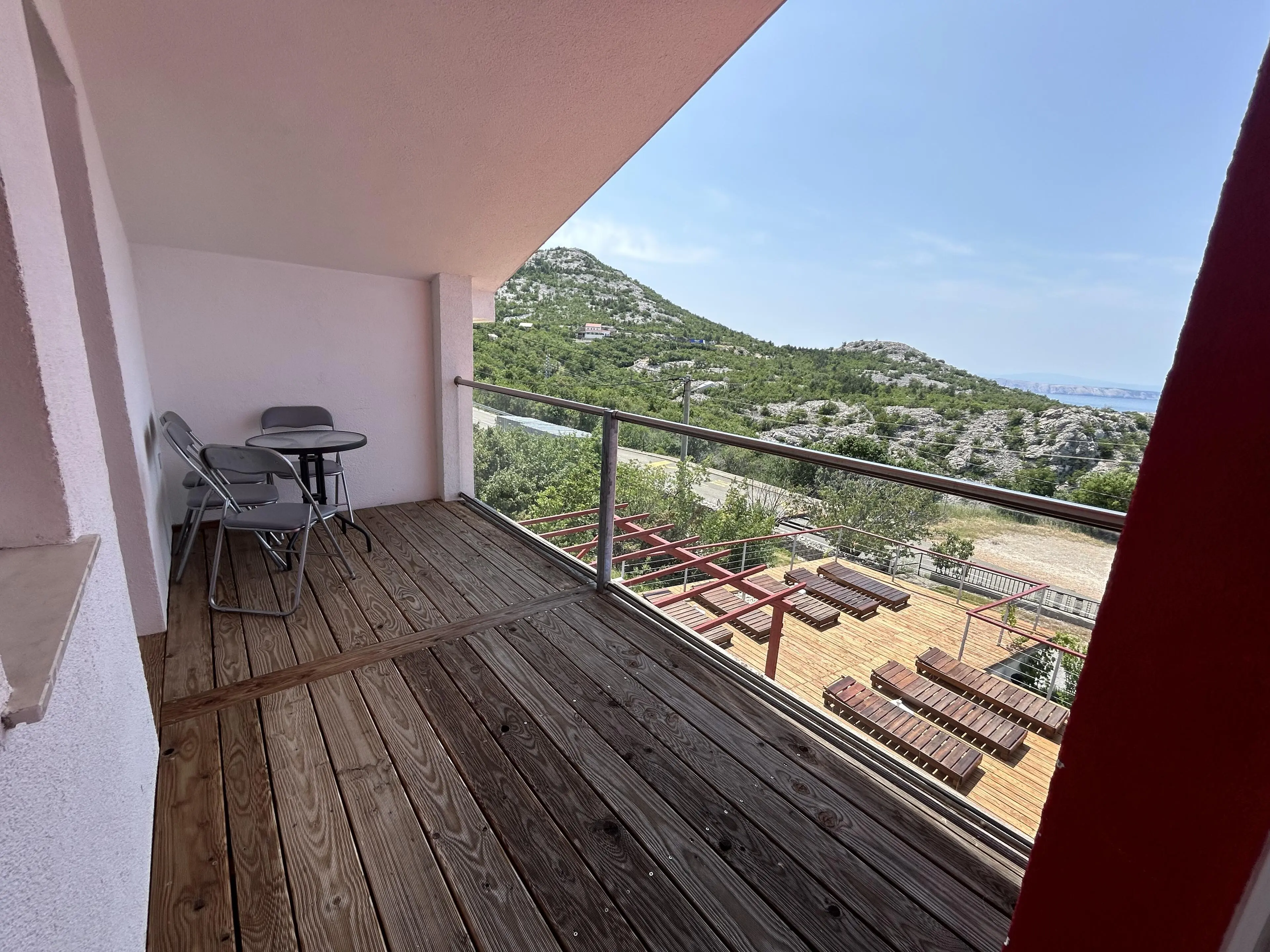 L'area esterna comprende un'ampia terrazza solarium con lettini, ideale per rilassarsi, prendere il sole, socializzare o godersi tramonti indimenticabili in completo silenzio.